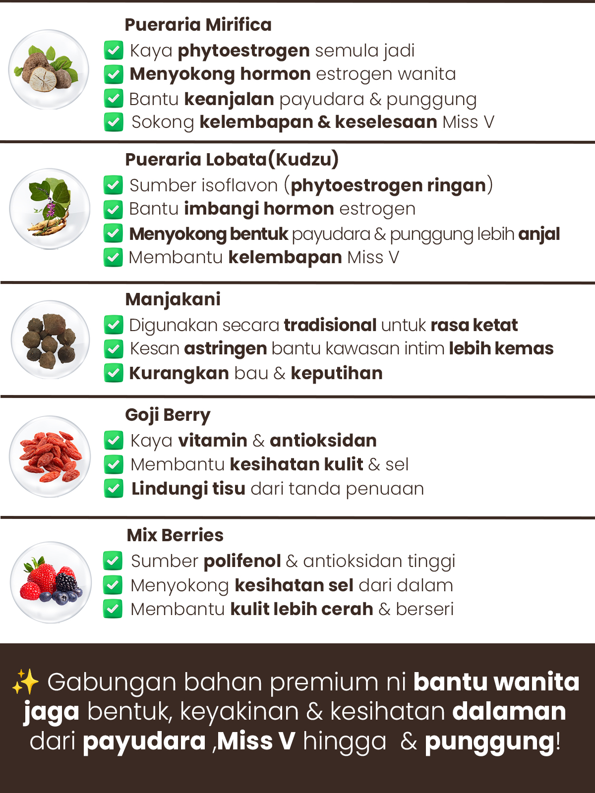 Golden Sari bantu stabilkan hormon, kurangkan simptom menopause, tegangkan semula payudara & ketatkan kawasan intim. Sesuai untuk wanita lepas bersalin, menopause atau yang alami perubahan bentuk badan.